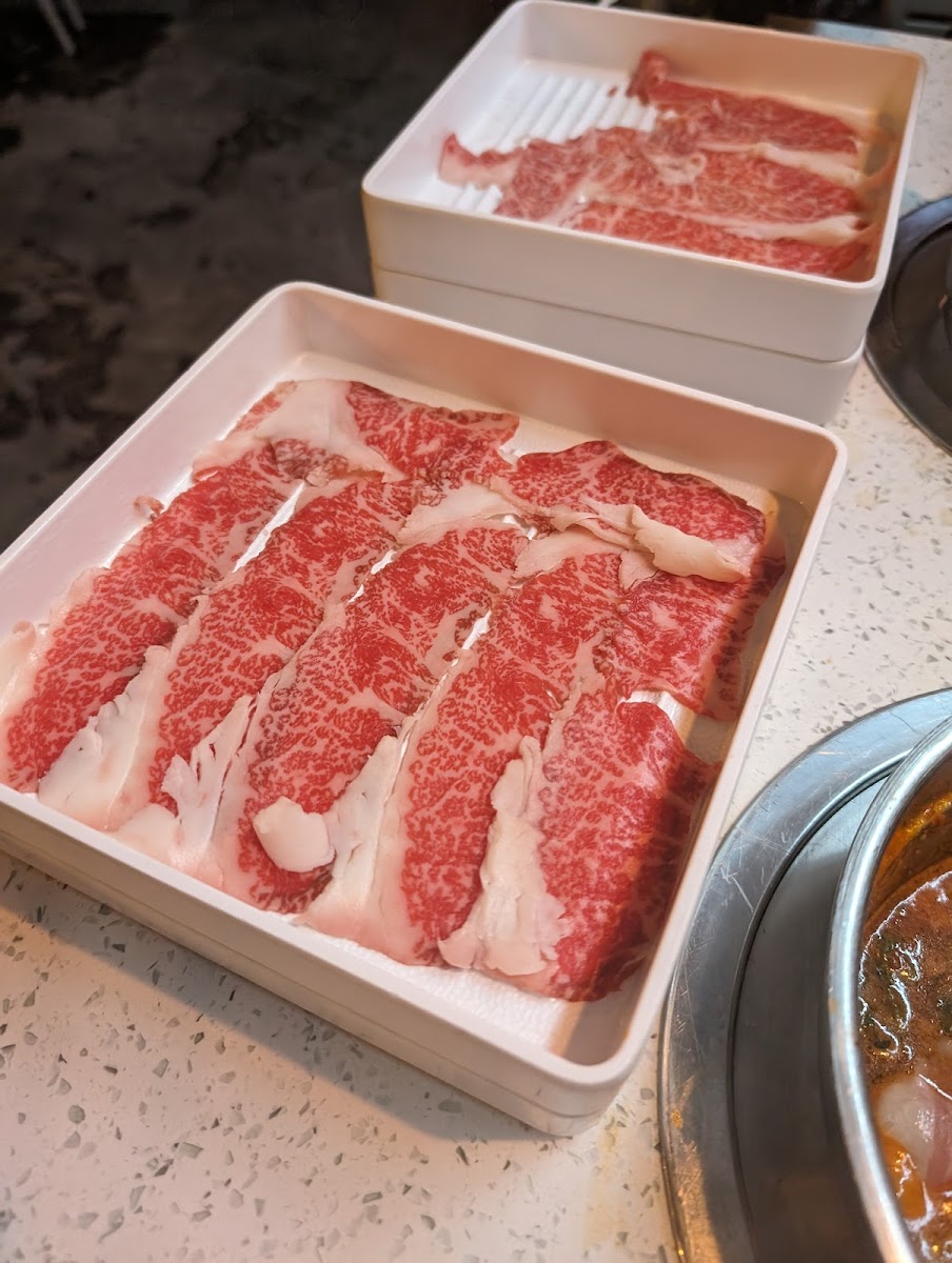 What stands out most at SHABURINA is the range and quality of the ingredients. Premium meats like A5 Wagyu and boneless short ribs are highlights for those looking to indulge in melt-in-your-mouth textures, while an extensive salad bar and fresh seafood selections provide balance. The broth options, such as the Hokkaido miso specialty or spicy miso soup, are flavorful enough to stand on their own but also serve as a perfect canvas for building personal flavor combinations from the expansive sauce bar. Those new to hot pot might find the ordering process a little unfamiliar at first, but the attentive staff make the effort feel smooth and welcoming.