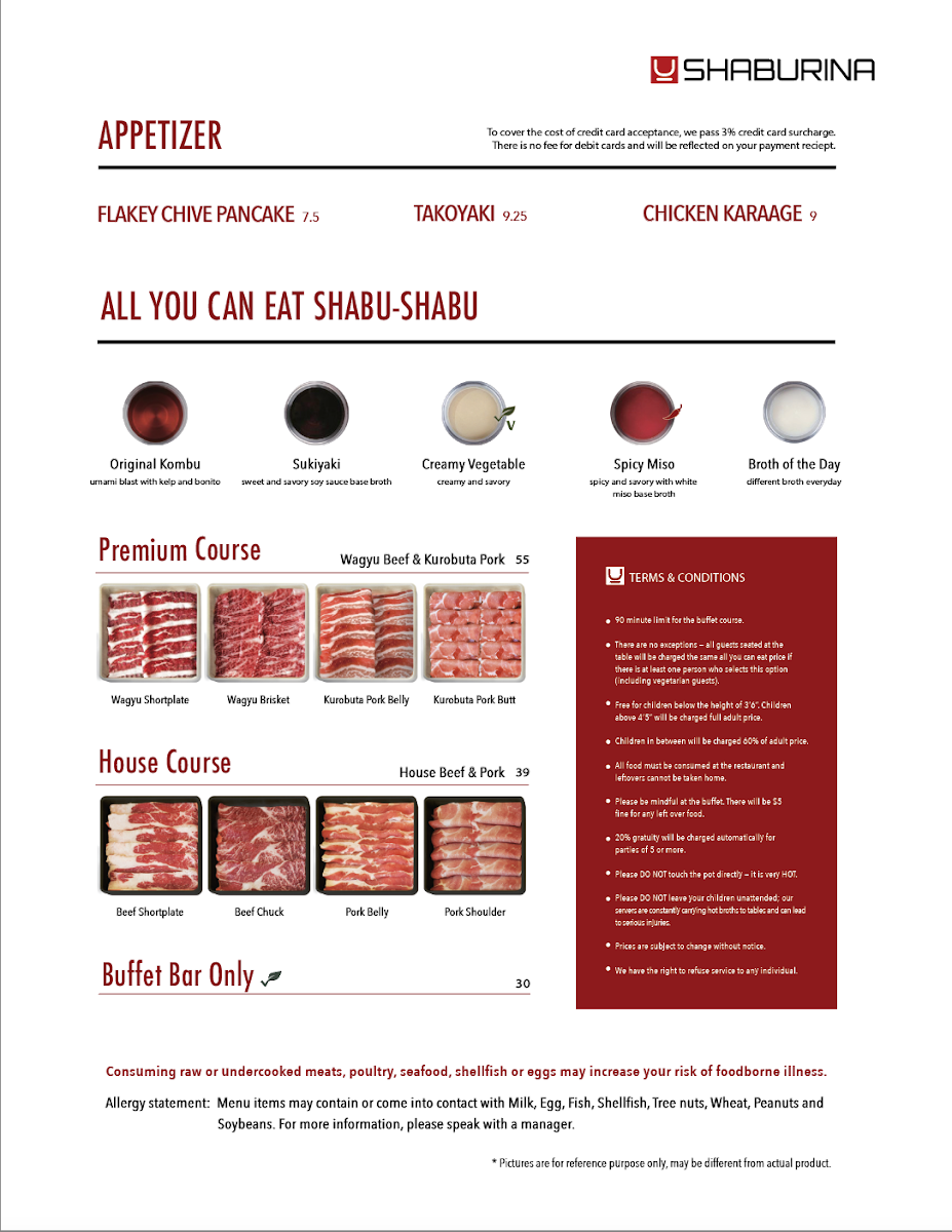 SHABURINA SHABU-SHABU HOT POT Menu